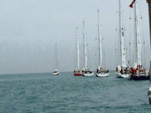 All 12 yachts set sail at 10am to deliver the boats to London. Settled conditions and some warm-up Mexican waves sailing out of Portsmouth made for some rather pleasant sailing.