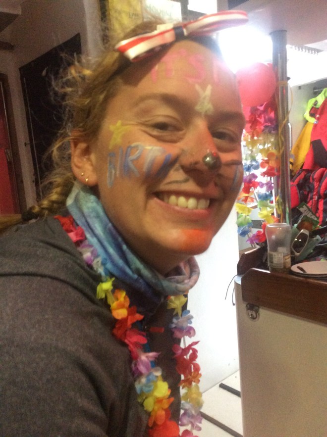 Emily’s birthday didn’t get off to the best start as a storm hit that night, the result being Lars breaking a rib after falling around the helm. Emily’s birthday did, however, involve LOTS of face paint, the best being Emily herself when she fell asleep with “it’s my birthday” written on her face alongside a USA bow tie in her hair and a lei around her neck. Brilliant.