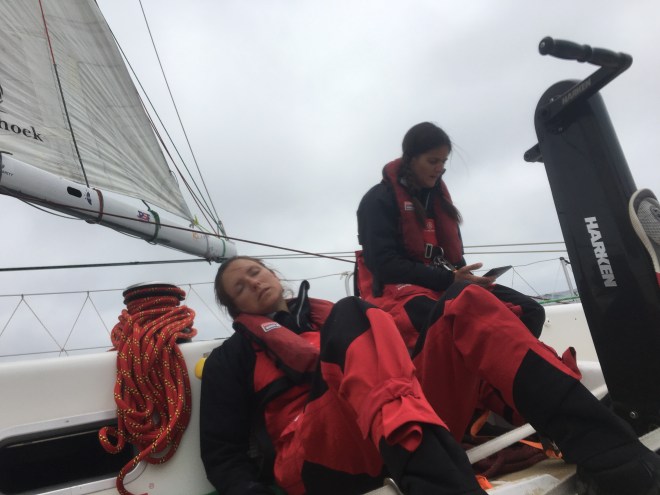 As we’re heading further north, it’s getting very much colder on deck, so we joke that we’re dressed for the British summer, ie wearing most of the layers we own. Time seems to be passing very, very slowly, not helped by the race extension to Rockhall: a tiny rock waaaaaay out west. For 3 days now, we’ve been 5 days out from Derry. Time is standing still. The only advantage of being out here are the nights: we’re now so far north that it no longer truly gets dark at night. Even at 2am, there is a smudge of light on the horizon – I think in retrospect, that’ll make this extension worth it.