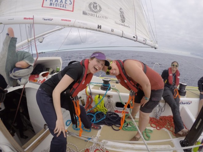 During daylight hours, the weather has been cracking for the last 3 days (what feels like 9). We’re currently in a Pacific high which means bright sunshine, blue skies…and not a lot of wind. We’ve barely moved at times which makes for a lovely soothing experience but isn’t great for racing. We’re in 11th place already. That’s effectively last as Cljpper Telemedhad an issue with their boat before race start so are several hundred miles behind. This means they’ll be feeling the chill more than us: you really can feel it getting warmer everyday. The RTW crew have warned us newbies of the delights to come when it gets hot. I already find myself sweating a lot on this boat, particularly below deck (could have something to do with the GIANT sleeping bag I own). What’s it going to be like by week 3?!