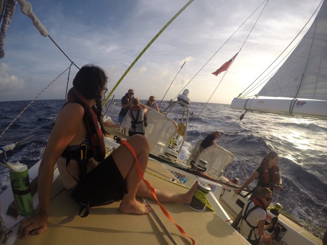 The next 2 days then passed in a sleepy Stugeron-fuelled haze as I struggled to remain awake on any watch despite being within sight of nearly all of the other boats. Despite not having been sea-sick since Seattle, I still made sure to take the pills at the beginning of a race just incase an unusual swell set me off. At first, we had the Spinnaker up and it was what felt like constant gybing. For the first time, I actually got to helm during a couple of gybes – even though it was just a few, I briefly felt like a pro.