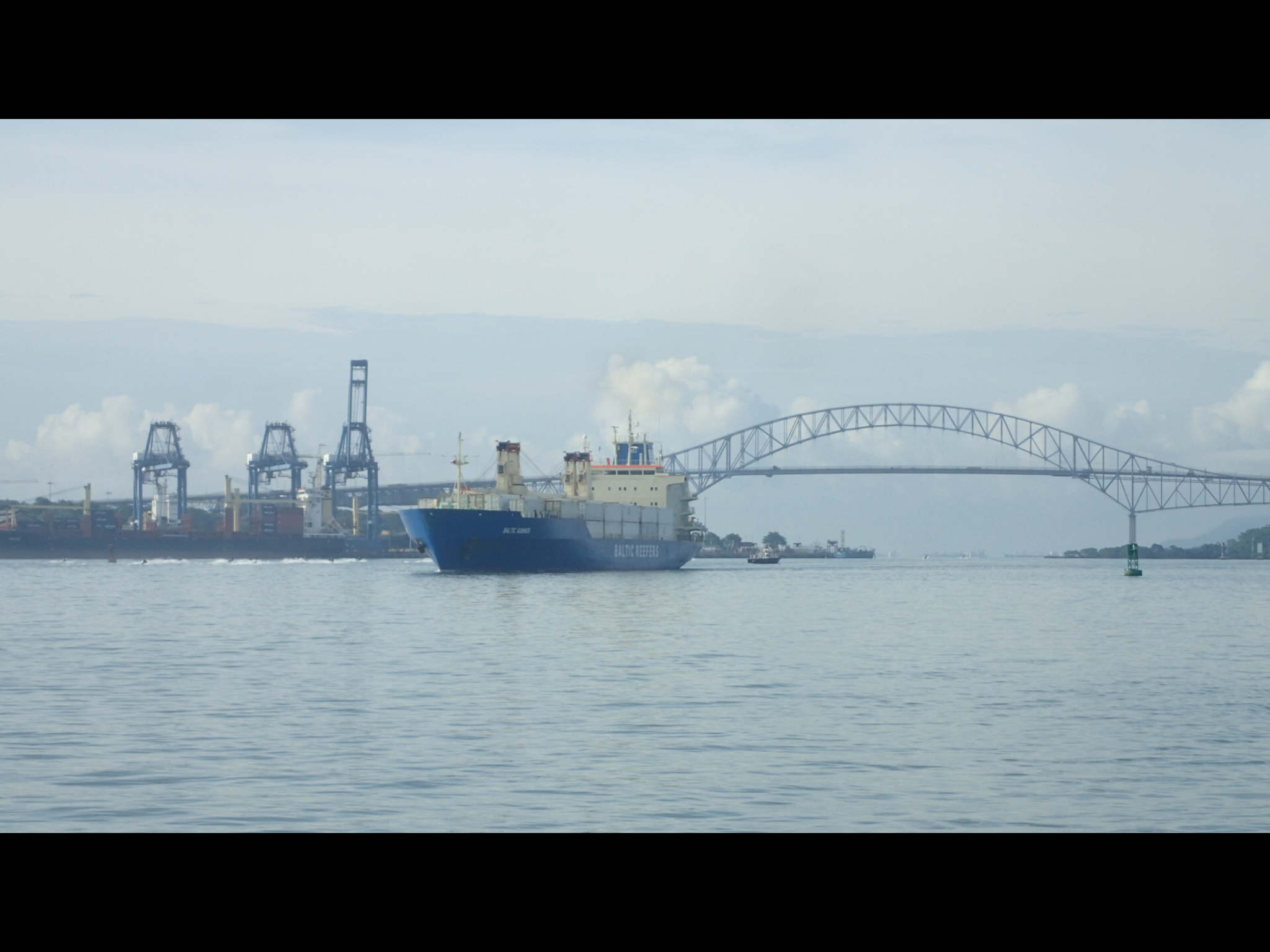 Here we go! Off into the canalThe bridge of the AmericasSnuggling up to some slightly larger boats